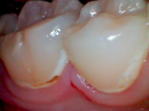 表面上はなんとなく黒ずんでいるだけだが、デンタルフロスが引っかかりやすいのと何となくしみるということで来院された例です。